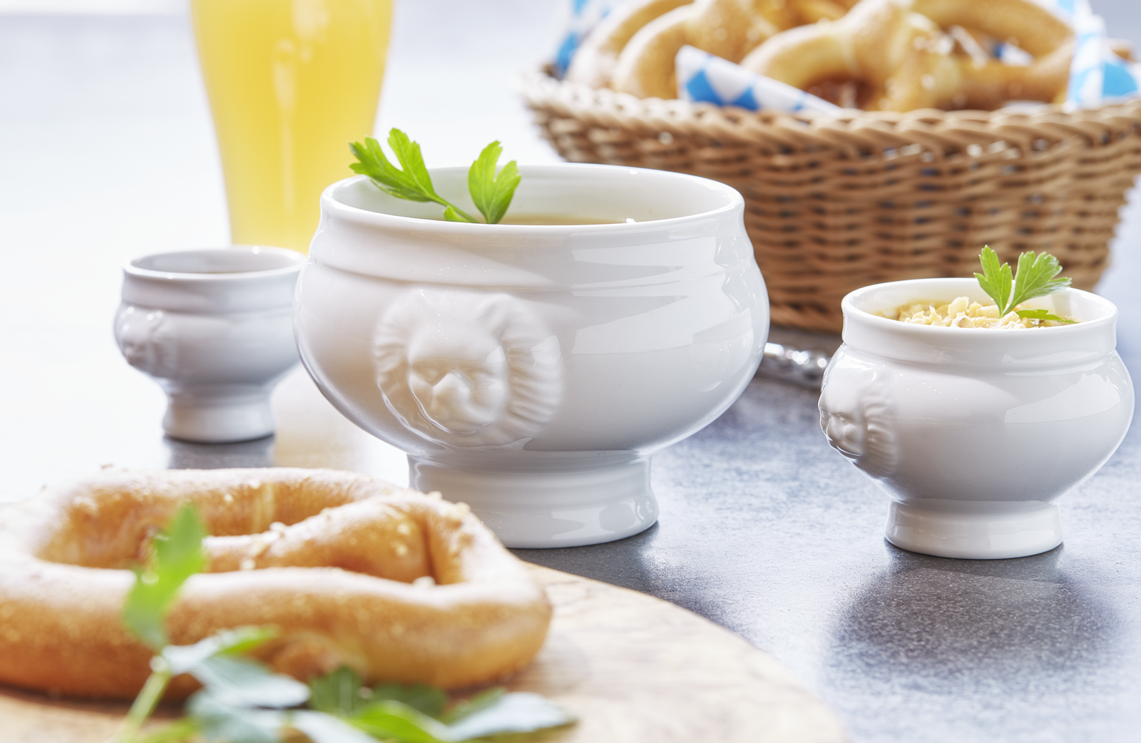 With rustic serving ideas, every Bavarian celebration becomes a highlight – whether it’s in a beer garden, on a terrace or in a shop setting. Wooden boards for hearty Bavarian platters, lion’s head tureens for white sausage and soup, practical glasses for beer or apple spritzer: the result is not only delicious but truly authentic.