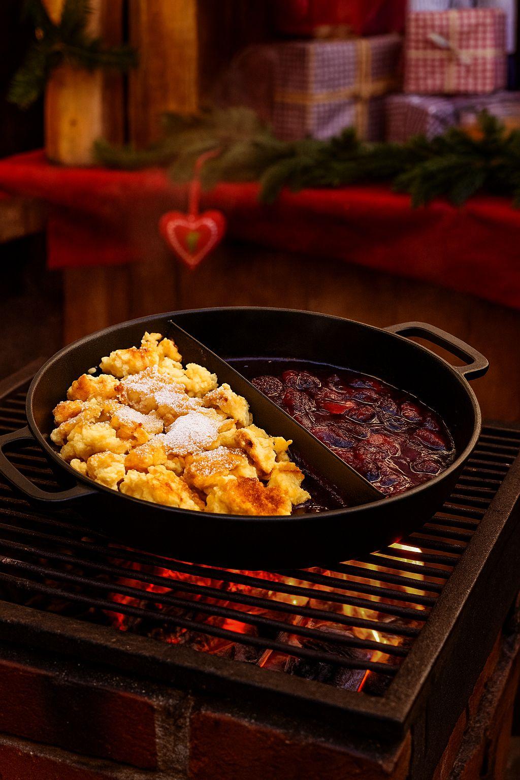 Our giant pan is a real all-rounder. You can use it to prepare everything your guests love – from hearty fried potatoes, potato noodles or mushroom dishes to sweet treats such as Kaiserschmarrn or fried fruit. Cast iron